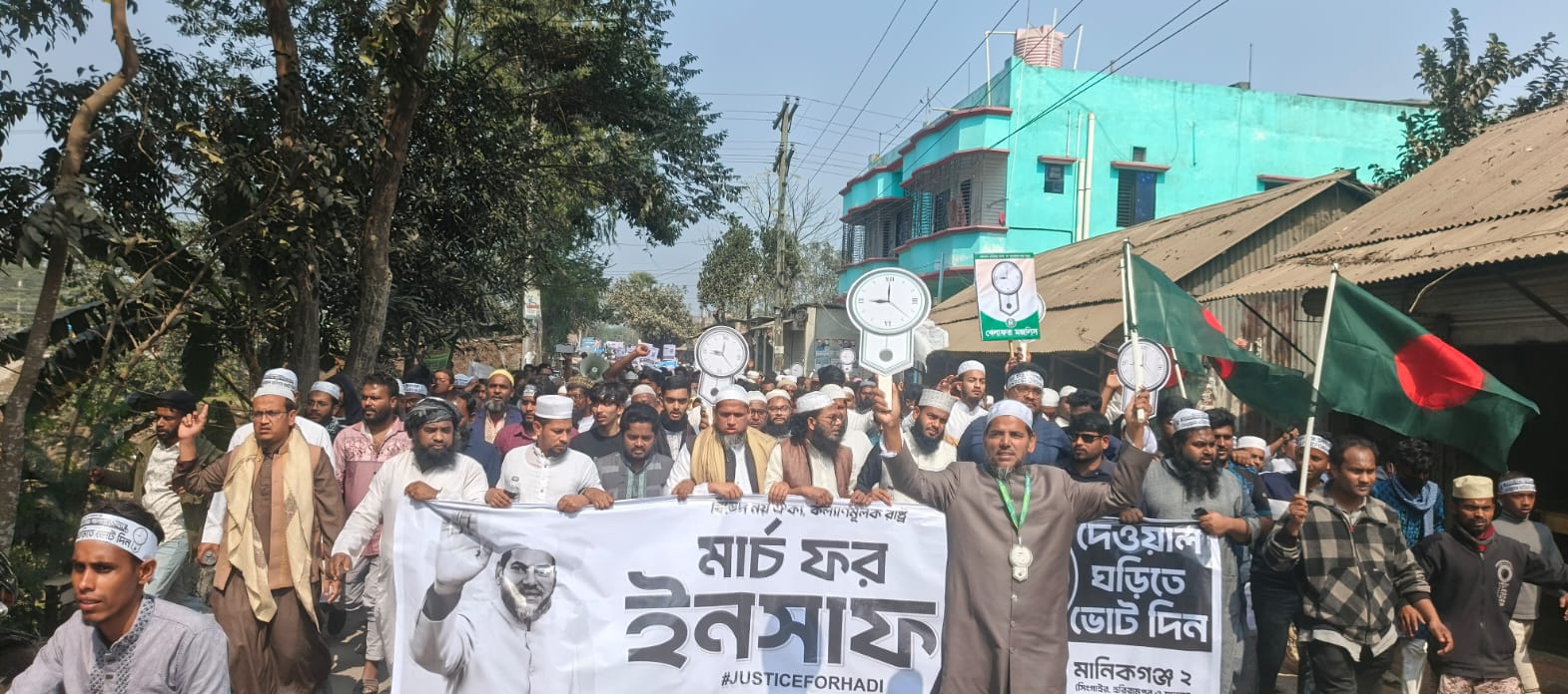 মানিকগঞ্জ-২ আসনের ১১ দলীয় জোটের প্রার্থী সালাহ উদ্দিন কর্মীসমর্থক নিয়ে গণসংযোগ