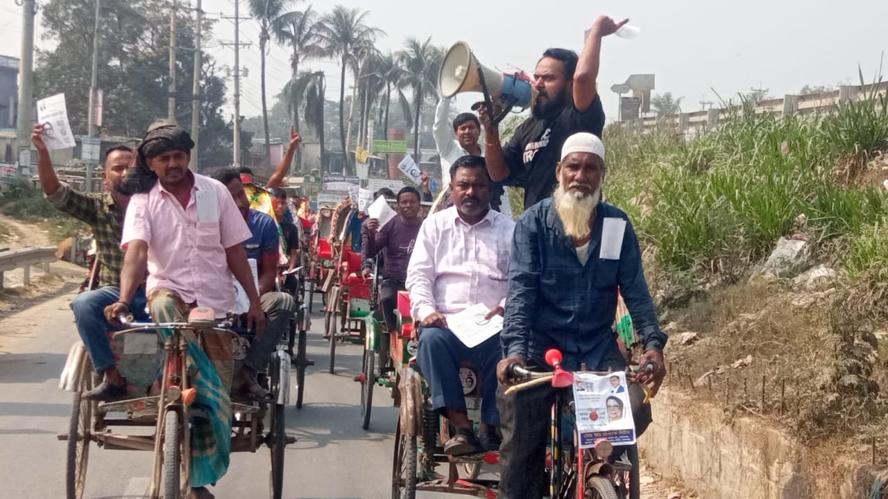 মানিকগঞ্জ-৩ আসনে রিতার পক্ষে ব্যতিক্রমী র্যালি: ধানের শীষের পক্ষে রাস্তায় নেমেছেন রিকশা চালকরা