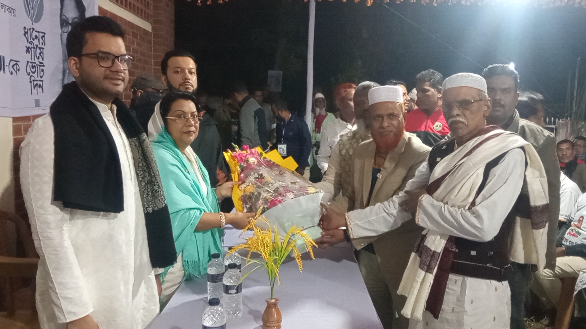 মানিকগঞ্জ-১ আসনে বিএনপির প্রার্থী জিন্নাহর নির্বাচনী প্রচারে স্ত্রী শায়লা