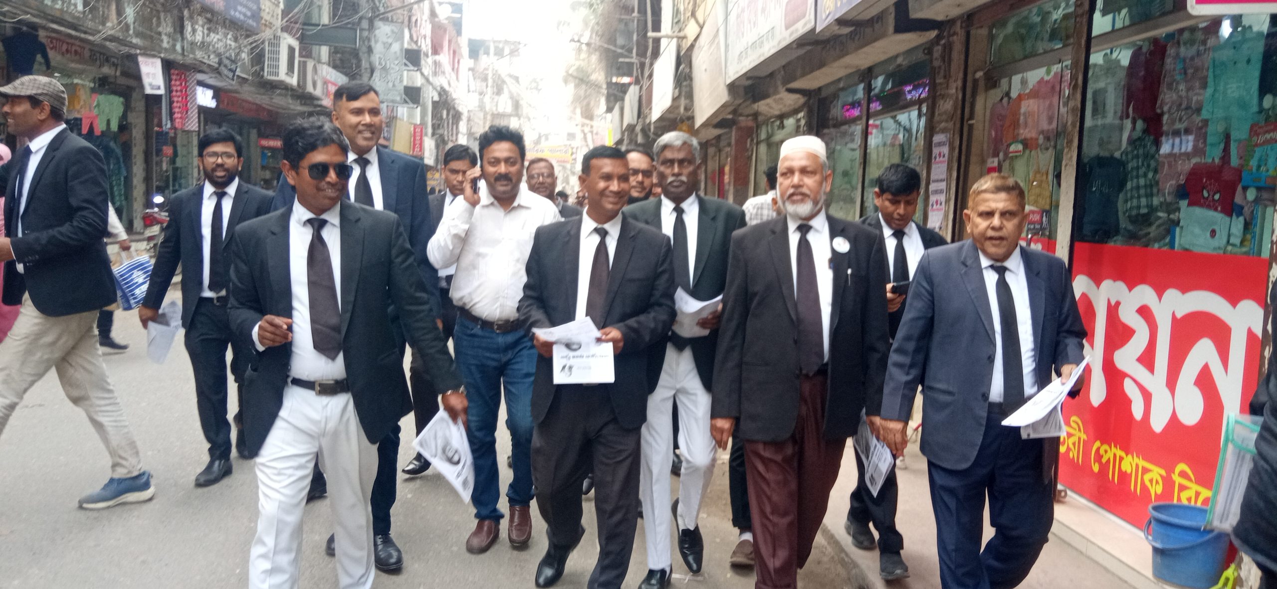 মানিকগঞ্জ-৩ আসনে বিএনপি মনোনীত প্রার্থী আফরোজা খানম রিতার পক্ষে আইনজীবীদের গণসংযোগ