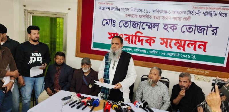 মানিকগঞ্জ–১ আসনে বিএনপি প্রার্থীর বিরুদ্ধে নির্বাচনী পরিবেশ নষ্টের অভিযোগ করলেন স্বতন্ত্র প্রার্থী তোজা